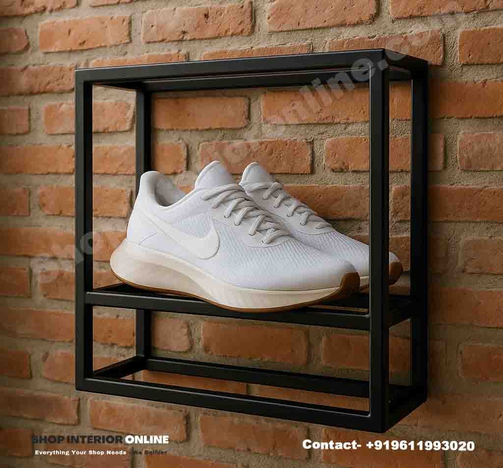 This Double Frame Shoe Display Rack is crafted for modern fashion environments. Its dual-layer steel structure not only enhances strength but also provides a luxury floating appearance, ideal for highlighting premium sneakers or limited-edition footwear.