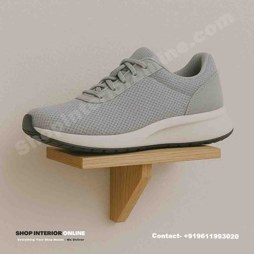 The Tri-Support Wooden Wall Mounted Shoe Display Rack blends the charm of solid wood with the simplicity of geometric balance.