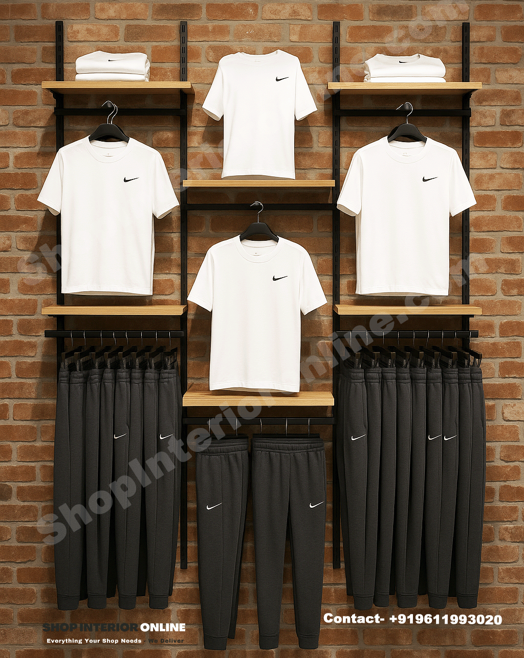 Built with high-grade steel channels and smooth-finish wooden planks, it’s engineered for both strength and style — ideal for apparel stores, fashion boutiques, and sportswear outlets.